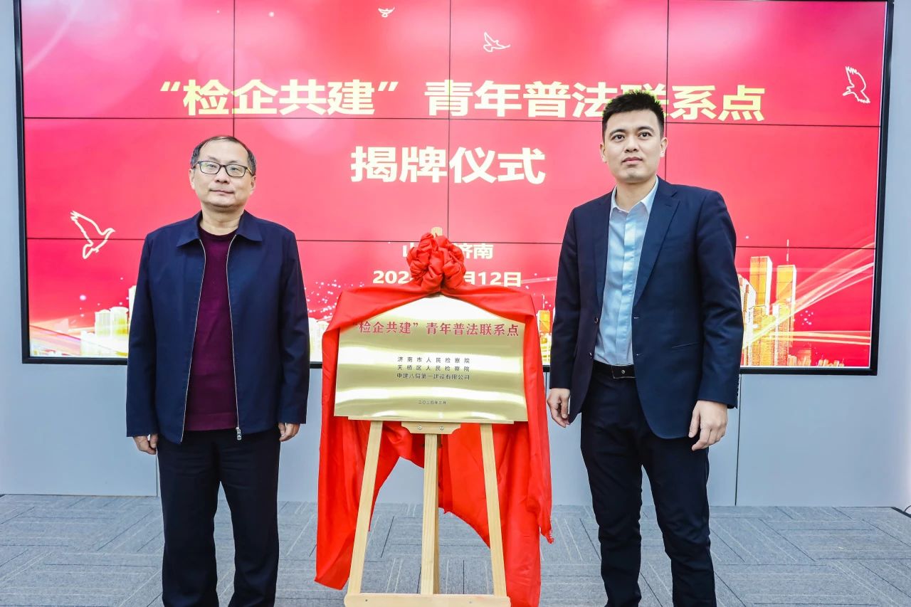座談交流中,雙方青年員工結(jié)合工作實(shí)際,就企業(yè)運(yùn)營(yíng)與個(gè)人履職過(guò)程中的相關(guān)法律風(fēng)險(xiǎn)與法律需求進(jìn)行深入交流。封政、王軍共同為“檢企共建”青年普法聯(lián)系點(diǎn)揭牌,封政、張軍鋒為項(xiàng)目青年員工贈(zèng)送普法書籍。