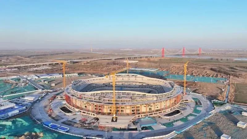 中建八局始終積極融入山東省發(fā)展戰(zhàn)略,服務(wù)綠色低碳高質(zhì)量發(fā)展先行區(qū)建設(shè),以一座座精品工程,助推塑造山東高質(zhì)量發(fā)展新優(yōu)勢(shì)。黃河體育中心專業(yè)足球場(chǎng)項(xiàng)目位于濟(jì)南新舊動(dòng)能轉(zhuǎn)換起步區(qū),總建筑面積19.7萬(wàn)平方米,是山東省首個(gè)6萬(wàn)座專業(yè)足球場(chǎng),目前世界最大的單層PTFE網(wǎng)格覆膜結(jié)構(gòu)工程,足球場(chǎng)屋頂覆膜結(jié)構(gòu)面積約4.3萬(wàn)平方米,為同類建筑之最、透光率是世界最高。目前,項(xiàng)目已完成下部鋼結(jié)構(gòu)施工,即將進(jìn)入屋蓋鋼結(jié)構(gòu)施工階段。