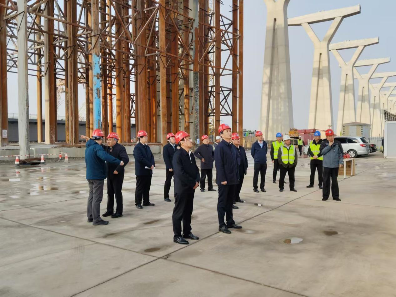 首先項目負責人介紹了該項目和套爾河特大橋總體概況、進展情況以及亮點做法,隨后檢查組一行乘電梯到達橋面,察看項目建設進展情況。