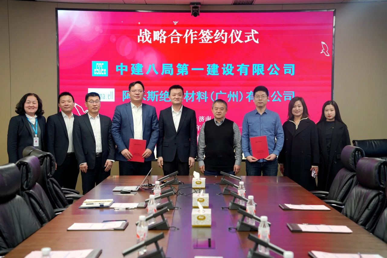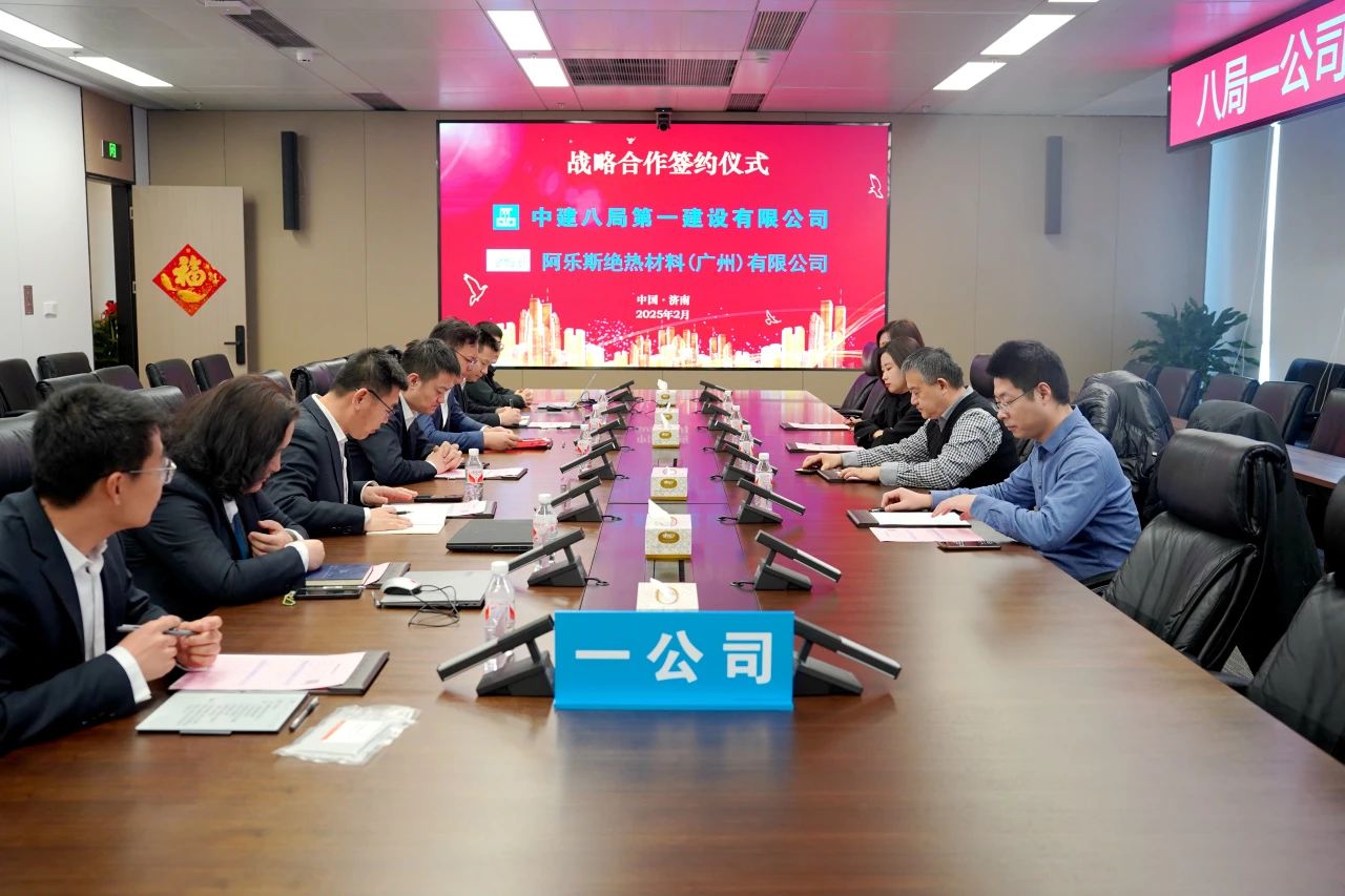 2月13日,中建八局一公司與阿樂斯絕熱材料(廣州)有限公司舉行戰(zhàn)略合作簽約儀式,阿樂斯中國(guó)區(qū)技術(shù)銷售總監(jiān)沙建華及相關(guān)負(fù)責(zé)人;中建八局一公司副總經(jīng)理、總工程師谷力,工程研究院、綠色建筑發(fā)展公司相關(guān)負(fù)責(zé)人參加簽約儀式。