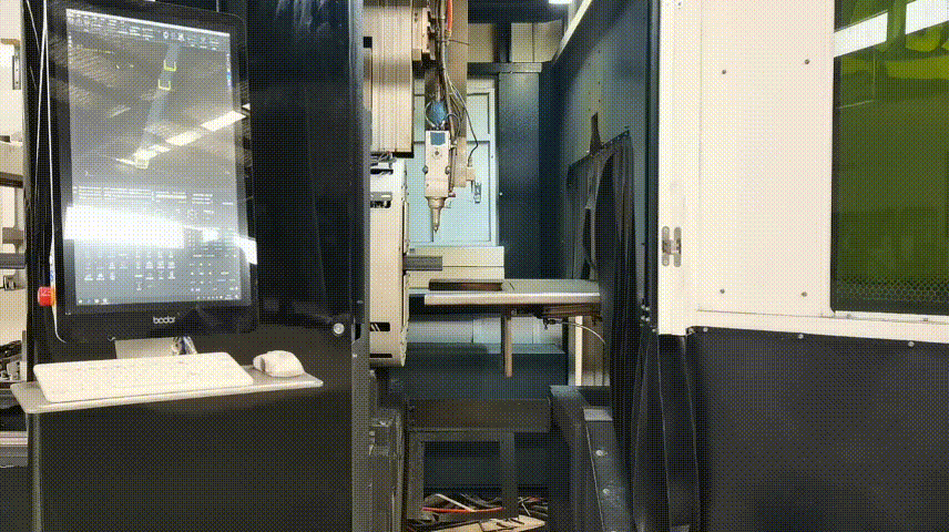 易裝工廠搭載的激光切割擴(kuò)孔機(jī),可覆蓋目前所有在建幕墻項(xiàng)目裝飾業(yè)務(wù),利用可視化智能操作系統(tǒng)實(shí)現(xiàn)轉(zhuǎn)接件和埋板的擴(kuò)孔以及鋁板幕墻鋼龍骨一體化切割,平均47秒可完成1榀鋼龍骨基層6個(gè)斷面的切割工作。
