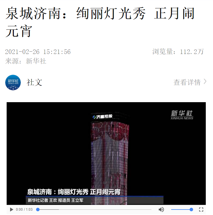 元宵佳節(jié),中建八一特別出品“絢麗燈光秀 正月鬧元宵”視頻,登上新華社客戶端,目前瀏覽量已過(guò)112萬(wàn),中建八一視頻號(hào)瀏覽量突破31萬(wàn)。