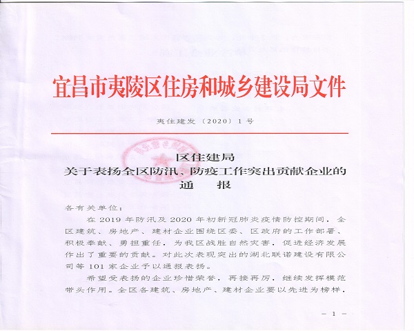 4月12日,宜昌萬達(dá)項(xiàng)目喜獲宜昌市夷陵區(qū)住房和城鄉(xiāng)建設(shè)局發(fā)文表揚(yáng)。