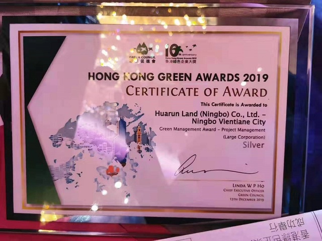 寧波萬象城項目榮獲2019年香港綠色企業(yè)之優(yōu)越環(huán)保管理獎銀獎