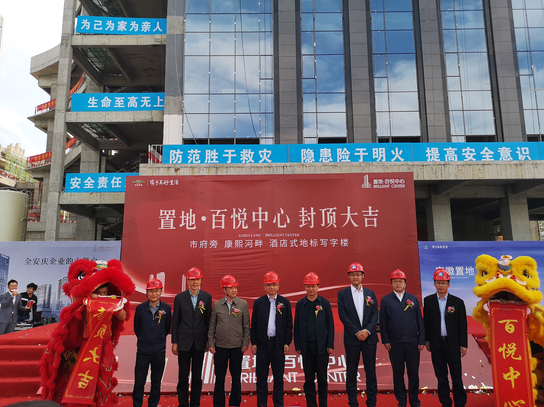 4月18日上午9時整,安慶置地·百悅中心項目隆重舉行A1主樓封頂儀式。 安慶市政府副秘書長畢圣國、安慶宜秀區(qū)副區(qū)長汪沛、安慶市住房和城鄉(xiāng)建設(shè)局副局長王武、安慶市住房和城鄉(xiāng)建設(shè)局房地產(chǎn)市場監(jiān)管科科長丁邦朝、安慶市宜秀開發(fā)區(qū)管委會副主任王曉峰、中建八局一公司華中公司經(jīng)理曹明國、招商銀行安慶分行行長宋騁、安徽置地安慶區(qū)域公司總經(jīng)理胡奇參加了此次封頂儀式。