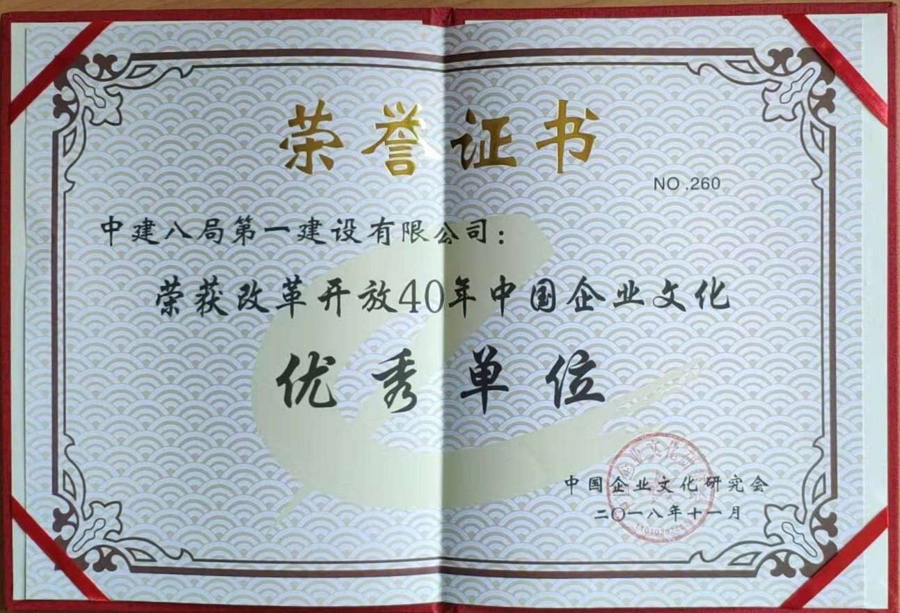 公司榮獲“改革開放40年中國企業(yè)文化優(yōu)秀單位”稱號