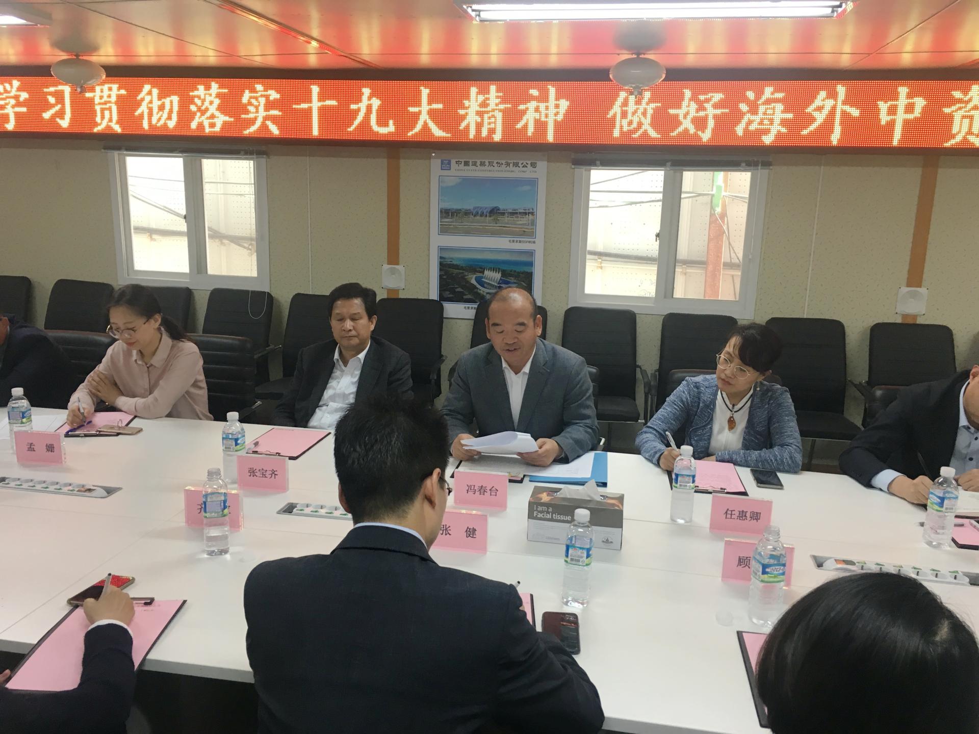 5月21日,中國駐濟州總領館與濟州中國商會黨建工作交流會在由中建八局承建的濟州夢想大廈新建工程項目舉行。 中國駐濟州總領館總領事馮春臺、副總領事張寶齊、領事任惠卿、副領事吳錫路、副領事孟珊一行到會指導,濟州中國商會會長、夢想大廈項目經理張健、綠地總指揮顧霞芳、國航代表齊永軍、東航代表魯韻梓等17位中資企業(yè)黨員參加了此次會議。