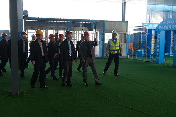 在項(xiàng)目相關(guān)人員的陪同和解說(shuō)下,宋錫慶一行先后調(diào)研了項(xiàng)目安全體驗(yàn)區(qū)、綠色施工體驗(yàn)區(qū)、項(xiàng)目科技館及塔樓A清水區(qū),宋錫慶對(duì)項(xiàng)目創(chuàng)建智慧工地的理念贊不絕口,并對(duì)清水區(qū)的施工品質(zhì)表示認(rèn)可,他提出,希望公司借助清水契機(jī),做好山東清水第一品牌。
