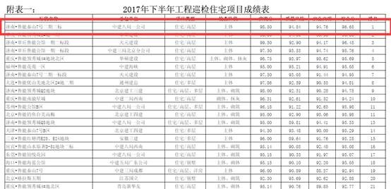 近日,公司濟南魯能泰山7號項目在魯能集團2017年下半年全國工程巡檢中,從42個受檢項目中脫穎而出,實測實量成績獲得98.5分,質(zhì)量風(fēng)險獲得94.84分,安全文明風(fēng)險獲得94.76分,綜合成績?yōu)?span>96.65分,勇奪第一名。