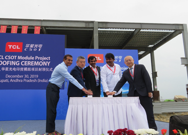 2019年12月30日,華星光電印度模組項(xiàng)目主廠房成功舉行封頂儀式,印度安得拉邦立法議員 MR.