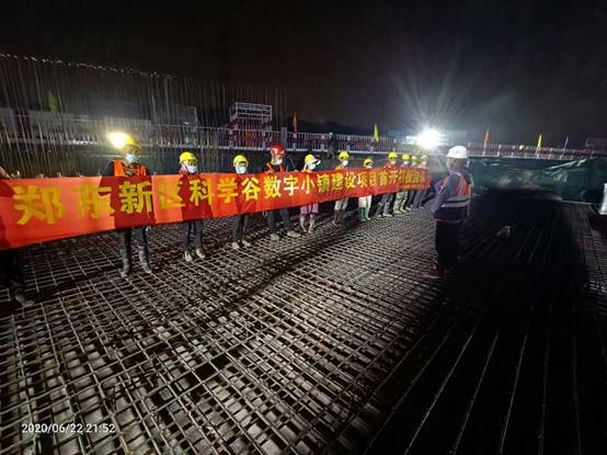 6月22日晚,鄭州市鄭東新區(qū)科學(xué)谷數(shù)字小鎮(zhèn)建設(shè)項(xiàng)目(一期)EPC總承包第二標(biāo)段綜合展示中心基礎(chǔ)筏板全線首開澆筑。