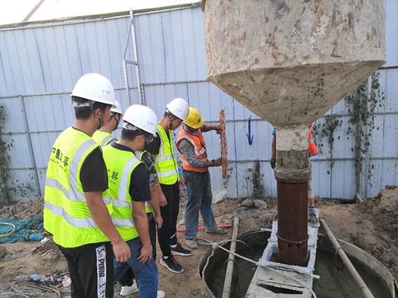 入夏以來,項(xiàng)目成員不畏酷暑,臨建搭設(shè)通過大家不懈努力最終落成。項(xiàng)目成員從第二次推進(jìn)會(huì)以來,以大干快上的信念砥礪前行。面對(duì)地質(zhì)穩(wěn)定性差、適宜性差的地質(zhì)條件,項(xiàng)目人員集思廣益、部門之間相互協(xié)調(diào),共同為樁基施工奠定基礎(chǔ),保障了首樁灌注圓滿完成。
