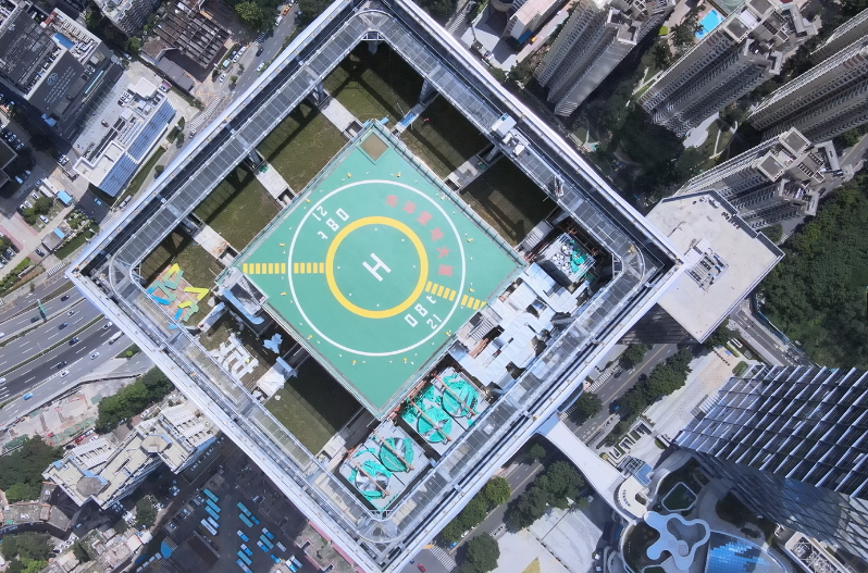大廈頂部設置高端停機坪,為企業(yè)定制專屬航線,滿足消防救災、貴賓接送、醫(yī)療救護、旅游觀光等多方需求。項目整體規(guī)劃設計突顯山水延伸與融合的理念,對標國際綠色建筑標準,堅持人與自然和諧相處,榮膺2022年度廣廈獎。