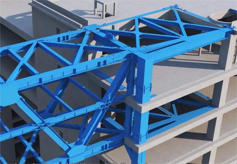 項(xiàng)目不斷優(yōu)化施工方案,通過(guò)設(shè)置后補(bǔ)桿件,加大連廊與主樓間距,合理設(shè)計(jì)桁架分段,科學(xué)規(guī)劃構(gòu)件放置,有效避免了構(gòu)件提升過(guò)程中與幕墻碰撞。