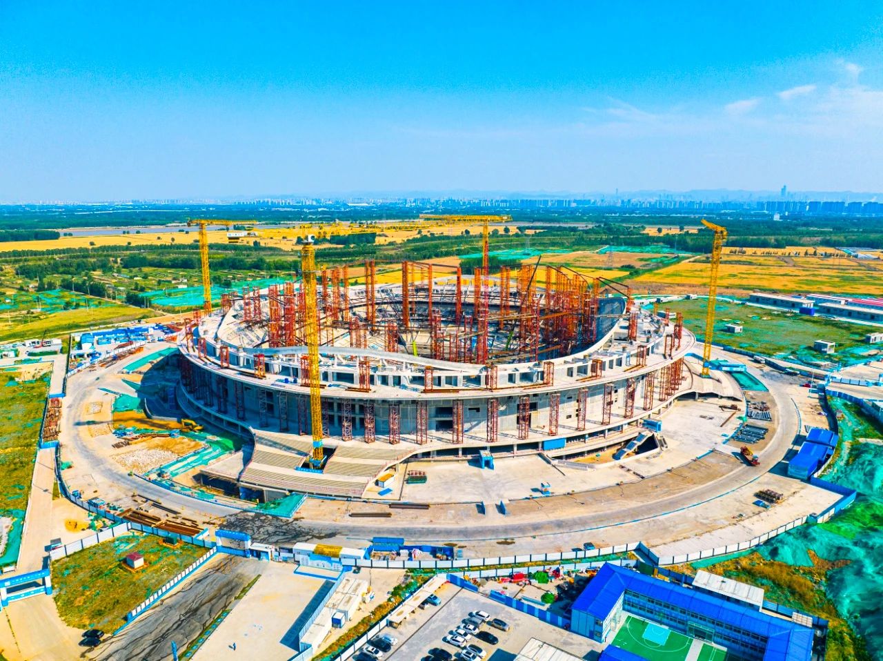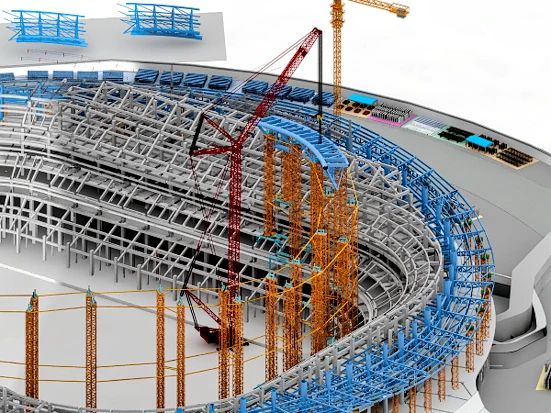 項(xiàng)目鋼結(jié)構(gòu)施工擁有多項(xiàng)國(guó)內(nèi)之最,屋蓋鋼結(jié)構(gòu)最大懸挑長(zhǎng)45米,是國(guó)內(nèi)體育場(chǎng)館懸挑長(zhǎng)度之最,施工跨越夏秋冬三季,溫度變化會(huì)形成巨大誤差累積,合攏段施工難度為目前國(guó)內(nèi)之最,鋼結(jié)構(gòu)拼裝完成后,需要將支撐胎架進(jìn)行分級(jí)卸載,卸載過(guò)程中產(chǎn)生的變形量是國(guó)內(nèi)同類(lèi)場(chǎng)館之最。