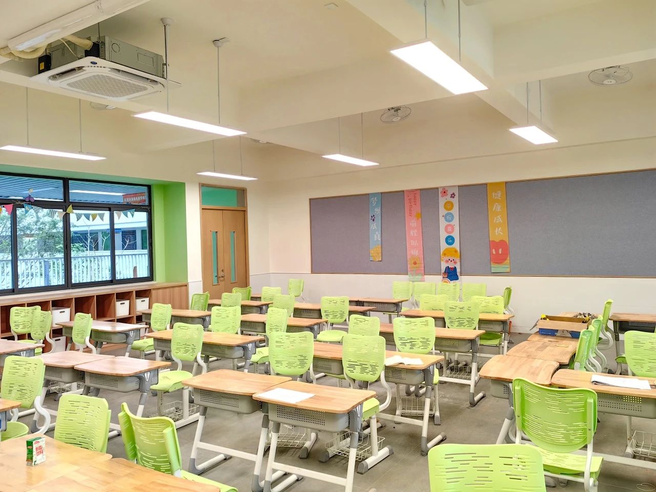 教室裝飾與建筑外觀一脈相承,現(xiàn)代化設(shè)施一應(yīng)俱全暖黃色燈光,保護視力,人體工學(xué)桌椅提供舒適體驗,每一處細(xì)節(jié)都彰顯建設(shè)品質(zhì)。