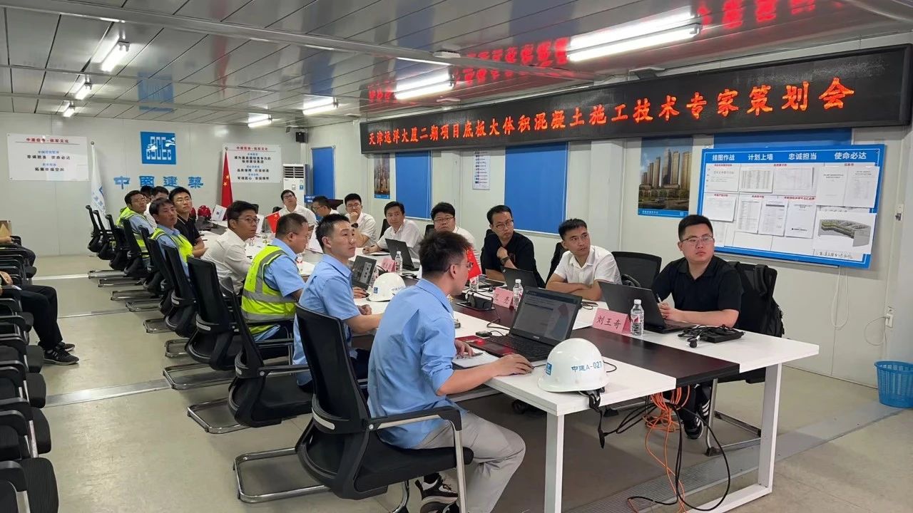 自2023年11月23日開工以來,項目跑步進(jìn)場、高效推進(jìn),形成清障應(yīng)急響應(yīng)機制,分階段細(xì)化場地布置,解決場地狹小帶來的困難,底板澆筑前,連續(xù)開展三輪施工策劃會,全面梳理潛在風(fēng)險、完善措施,確保混凝土順利澆筑。