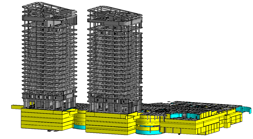 項目主體采用裝配式施工,整體裝配率達(dá)53%,通過提前制定工序穿插計劃,實現(xiàn)裝配作業(yè)與現(xiàn)澆作業(yè)流水穿插,120天完成1800余塊,疊合板960余塊,樓承板、20層預(yù)制樓梯精準(zhǔn)安裝,采用BIM三維場布軟件對工程全生命周期超前模擬,將各專業(yè)模型合并深化,累計解決各專業(yè)穿插沖突等問題200余項。