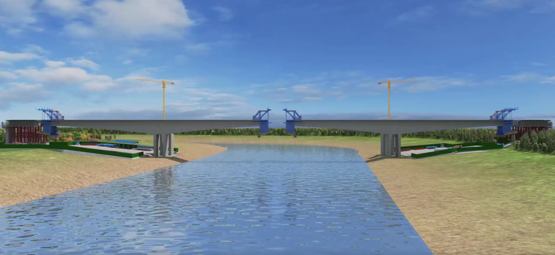 徒駭河特大橋是項目施工的重難點,全長1248.5米,共9聯(lián),單幅橋?qū)?6.5米,主跨長358.5米,最大跨徑165米,主橋采用單箱單室變截面預(yù)應(yīng)力混凝土連續(xù)梁結(jié)構(gòu)形式,是徒駭河跨徑最大連續(xù)剛構(gòu)現(xiàn)澆梁。