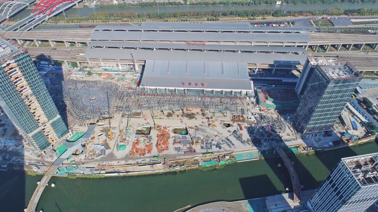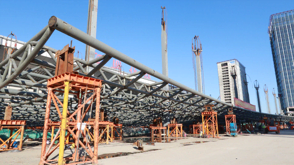 紹興高鐵北站TOD綜合體項目(A區(qū)塊)完成Q5樞紐管桁架全面提升