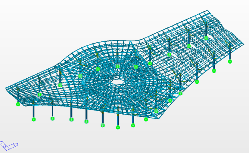 本次提升的Q5樞紐屋面桁架為高鐵站房外集散大廳的鋼屋架,分為東、西兩區(qū)依次提升,東區(qū)長170米、寬74米、重1600噸,西區(qū)長180米、寬106米、重2800噸,單個構件最重達15噸,總提升面積1.25萬平方米,提升高度約13.5米,為大噸位、大跨度、大面積的超大型構件高空整體提升,對施工提出了極大挑戰(zhàn)。