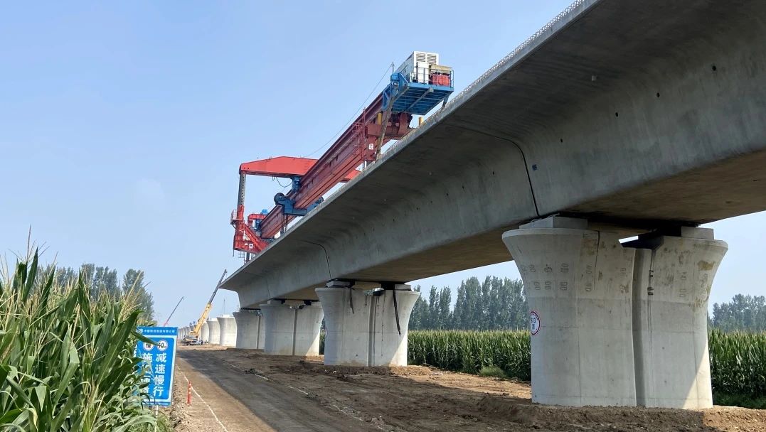 項目負責濟陽區(qū)與商河縣間由南向北共計16.9公里的高速鐵路特大橋箱梁制架任務,自2023年5月23日首孔箱梁架設(shè),前后歷時近19個月的時間共完成482孔箱梁的架設(shè)。