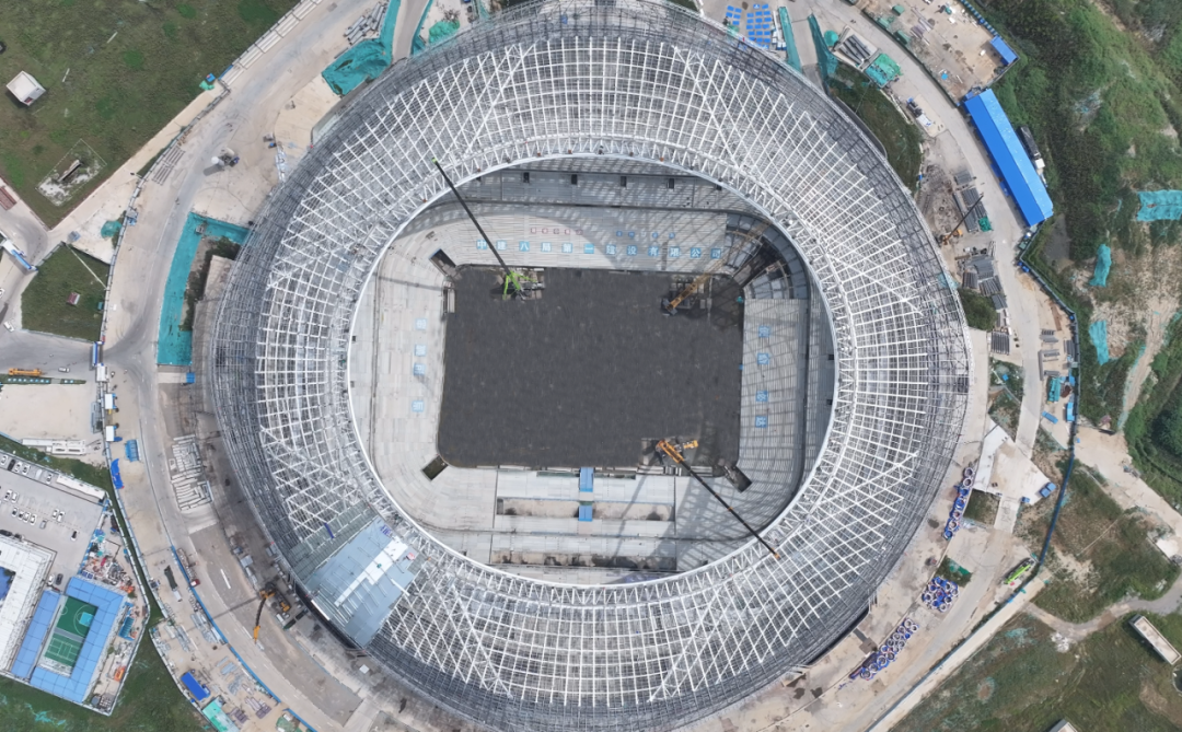 同時(shí),項(xiàng)目正全力推進(jìn)金屬屋面、防水層、隔音層等部位施工,即將進(jìn)入難度較大的膜結(jié)構(gòu)施工階段。屋蓋內(nèi)環(huán)將打造一圈 “透明屏障”,為足球場(chǎng)提供更優(yōu)的光照條件,進(jìn)一步提升觀賽體驗(yàn)。