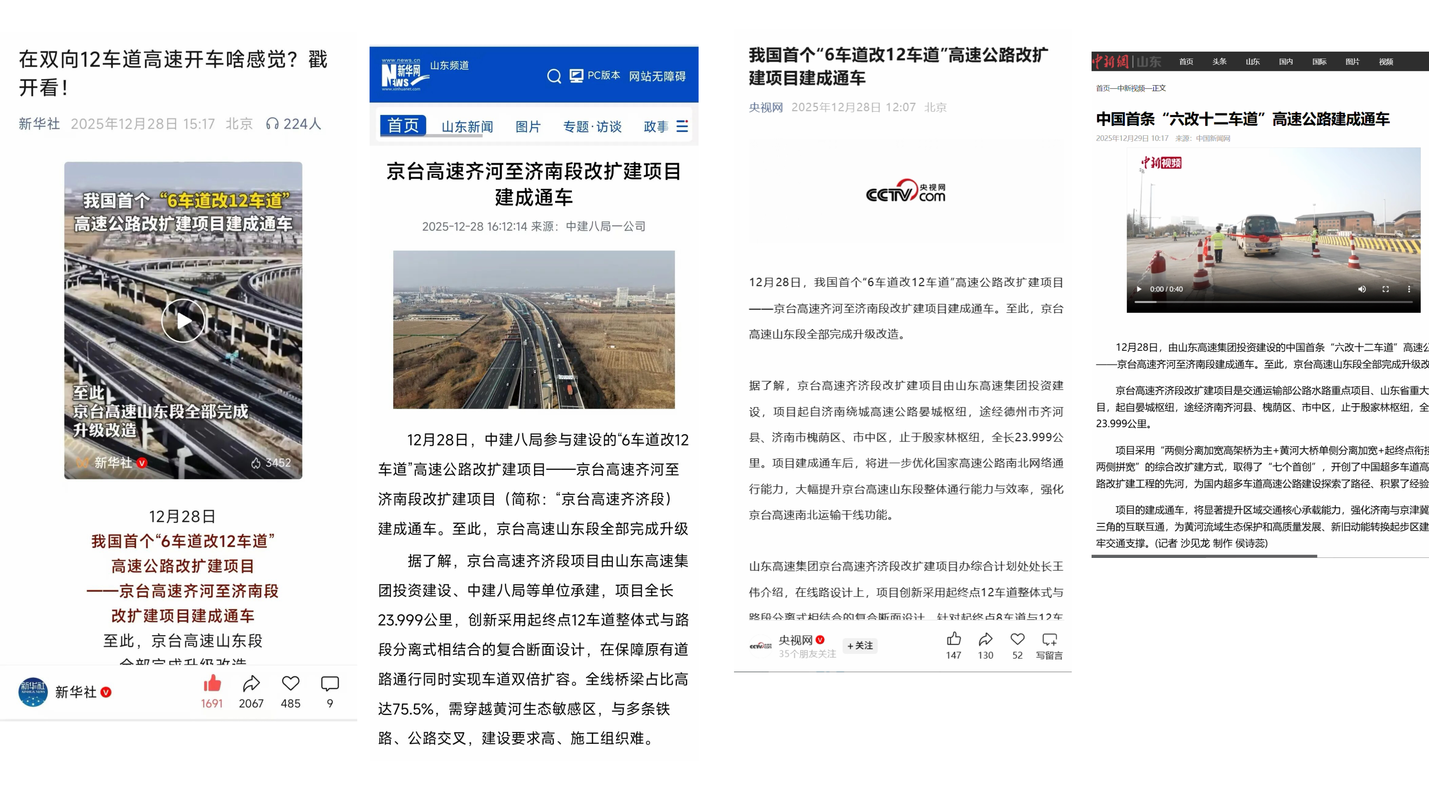 12月28日,由中建八局承建的國內(nèi)首條“6改12”高速公路項(xiàng)目——京臺(tái)高速齊濟(jì)段改擴(kuò)建項(xiàng)目建成通車。至此,京臺(tái)高速山東段全部完成升級(jí)改造,日均通行能力提升至約15萬輛次,對優(yōu)化國家高速公路南北網(wǎng)絡(luò)通行能力具有重要意義。