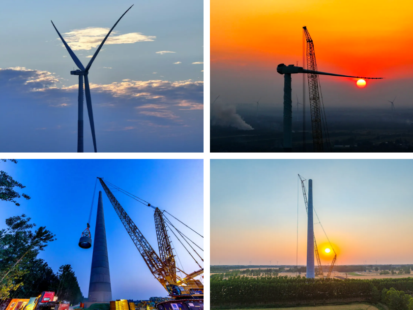 面對(duì) 5000 余個(gè)塔筒管片的生產(chǎn)任務(wù),項(xiàng)目在 60 公里外建立臨時(shí) “衛(wèi)星工廠”,40 天內(nèi)投產(chǎn);通過提前規(guī)劃葉片 “最優(yōu)運(yùn)輸路徑”,新建、改造道路 25.4 公里,讓百米巨大葉片從最遠(yuǎn) 600 公里外順利運(yùn)抵。