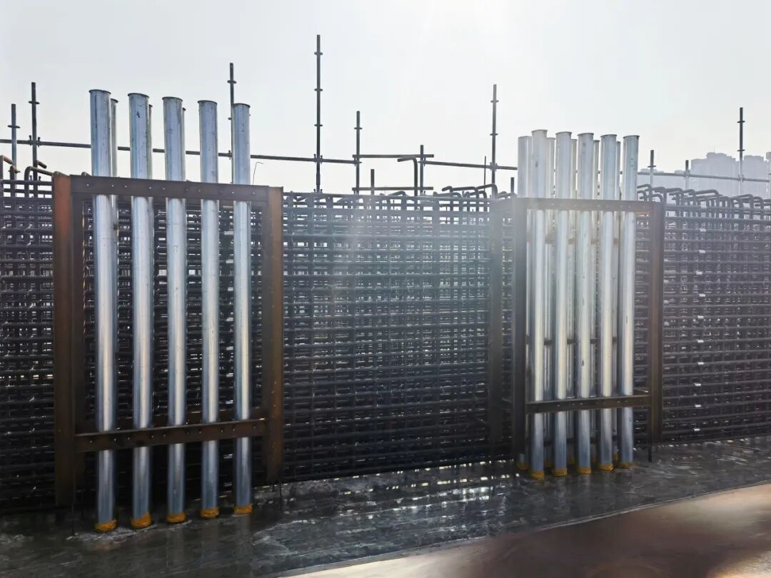 項目所在區(qū)域地基松軟,為最大限度降低沉降影響,項目創(chuàng)新采用 “長護(hù)筒護(hù)壁 + 樁端后注漿” 技術(shù),在不足 5000 平方米的區(qū)域,共打入 700 根深 27 米、直徑 0.7 米的嵌巖樁,讓地基可承受 200 米超高層建筑的重量。