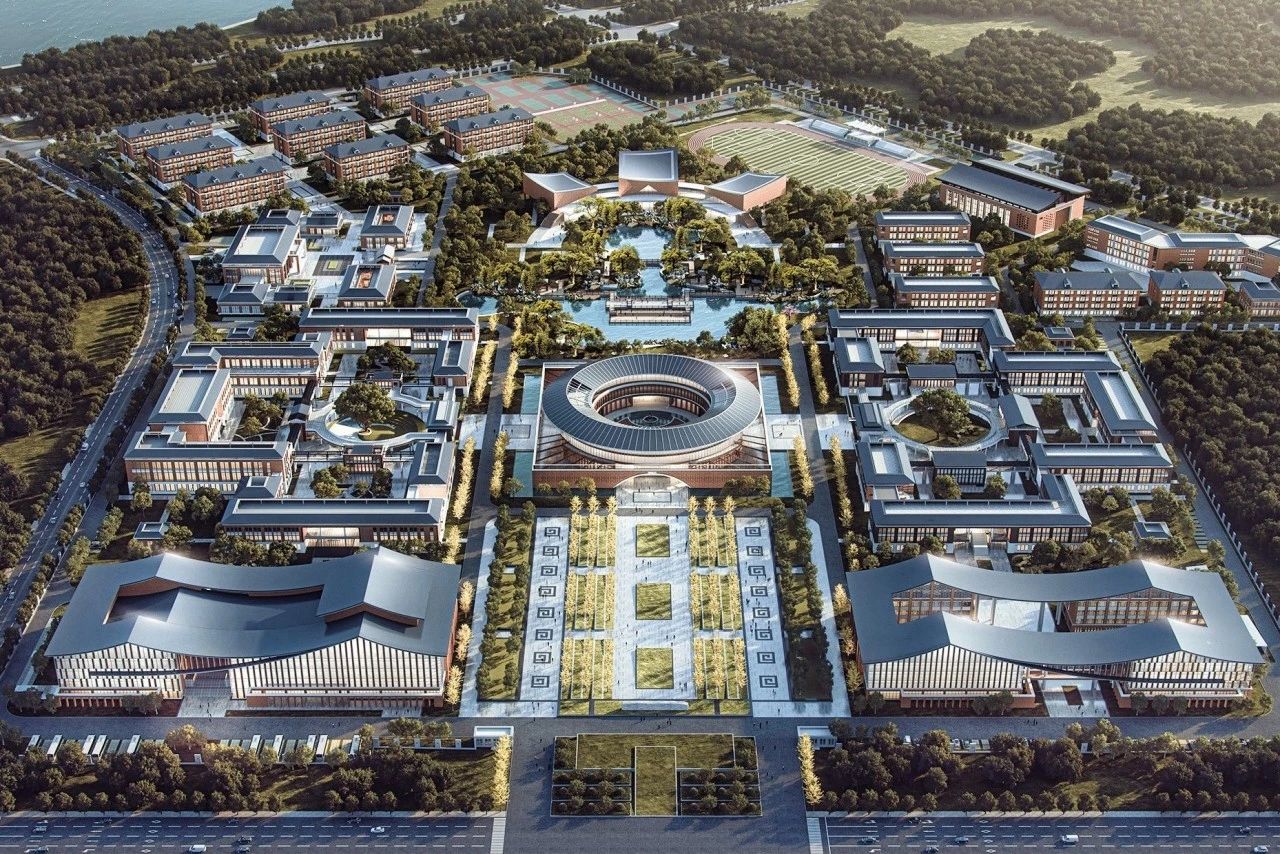 項目位于山東省德州市齊河縣,總建筑面積14萬平方米,以“規(guī)矩方圓”為設(shè)計語言,整體構(gòu)造中軸統(tǒng)一、四方圍合,主要建設(shè)行政辦公綜合樓、學(xué)術(shù)交流中心、教學(xué)樓組團、實習(xí)實訓(xùn)基地等,開設(shè)舞蹈、戲曲、音樂表演、舞臺藝術(shù)設(shè)計...