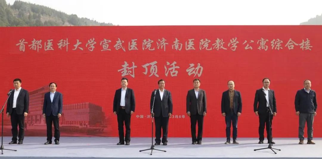 3月8日,濟(jì)南市中心醫(yī)院在東院區(qū)舉行首都醫(yī)科大學(xué)宣武醫(yī)院濟(jì)南醫(yī)院教學(xué)公寓綜合樓封頂活動(dòng)。