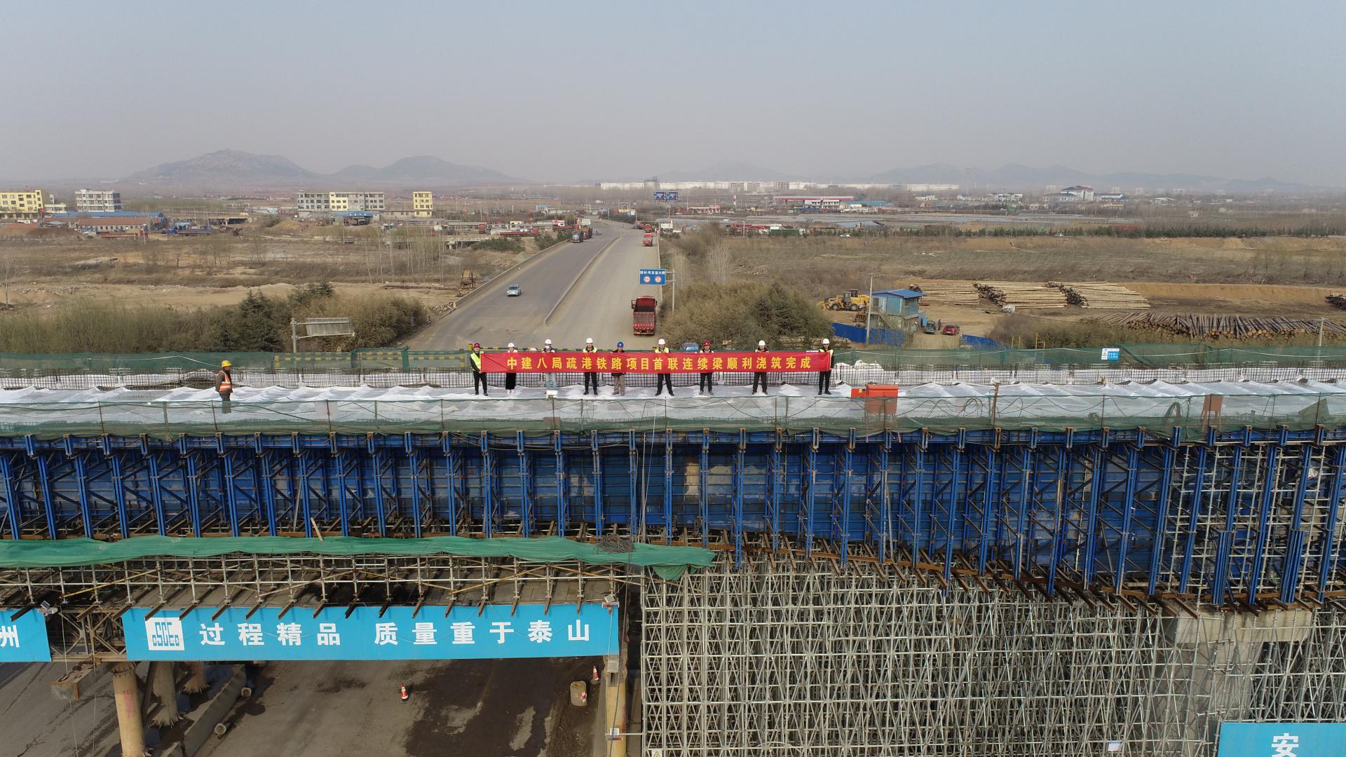 疏港鐵路項目完成全線首聯(lián)支架現(xiàn)澆連續(xù)梁澆筑