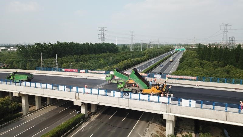 青浦區(qū)復(fù)興路項目順利完成瀝青上面層攤鋪工作