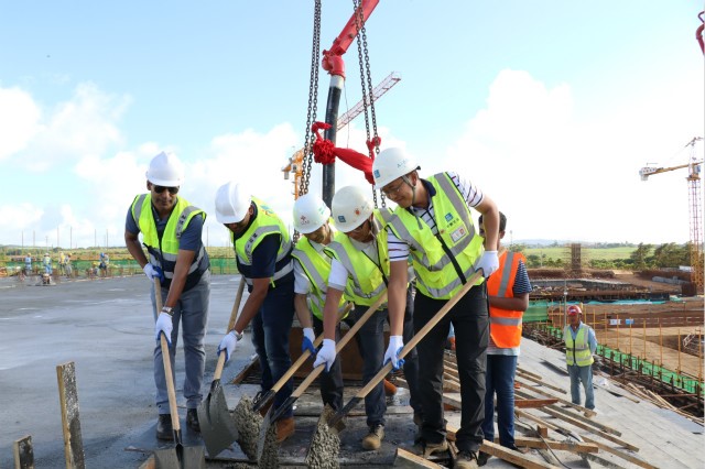 毛里求斯圣皮埃爾科特多沃綜合體育中心項目體育場地塊主體結(jié)構(gòu)封頂