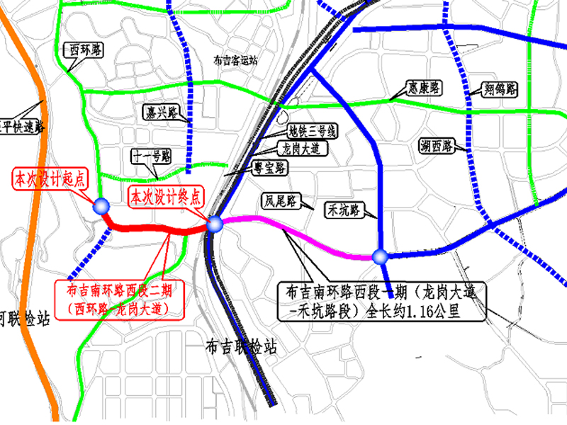布吉南環(huán)路(西環(huán)路至禾坑路段)建設(shè)工程,由我司代建,位于深圳市布吉街道,西起現(xiàn)狀西環(huán)路與十一號路交點,東至與現(xiàn)狀禾坑路交點,道路全長約2.