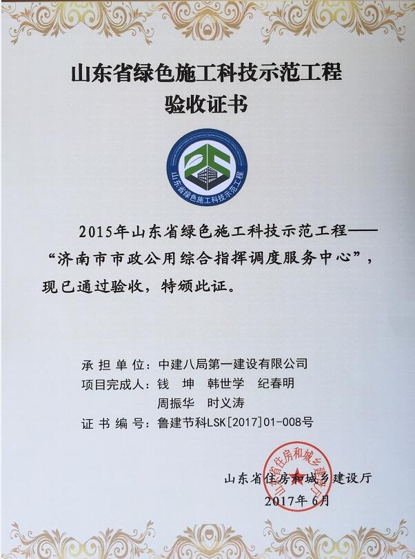 公司承建的“濟南市市政公用綜合指揮調(diào)度服務(wù)中心”通過山東省綠色施工科技示范工程驗收。