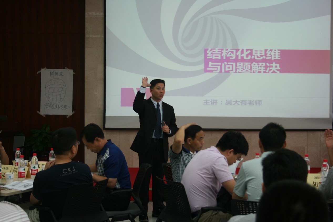 6月19日,臺灣知名結(jié)構(gòu)化思維培訓(xùn)師吳大有老師用一天的時間,以邏輯學(xué)為基礎(chǔ),講述了金字塔原理,通過面授、實(shí)操、互動等多種方式對項(xiàng)目經(jīng)理們實(shí)施了《結(jié)構(gòu)化思維與問題解決》的培訓(xùn),對項(xiàng)目經(jīng)理們工作中運(yùn)用結(jié)構(gòu)化邏輯實(shí)現(xiàn)管理目的有一幫助與指導(dǎo)。