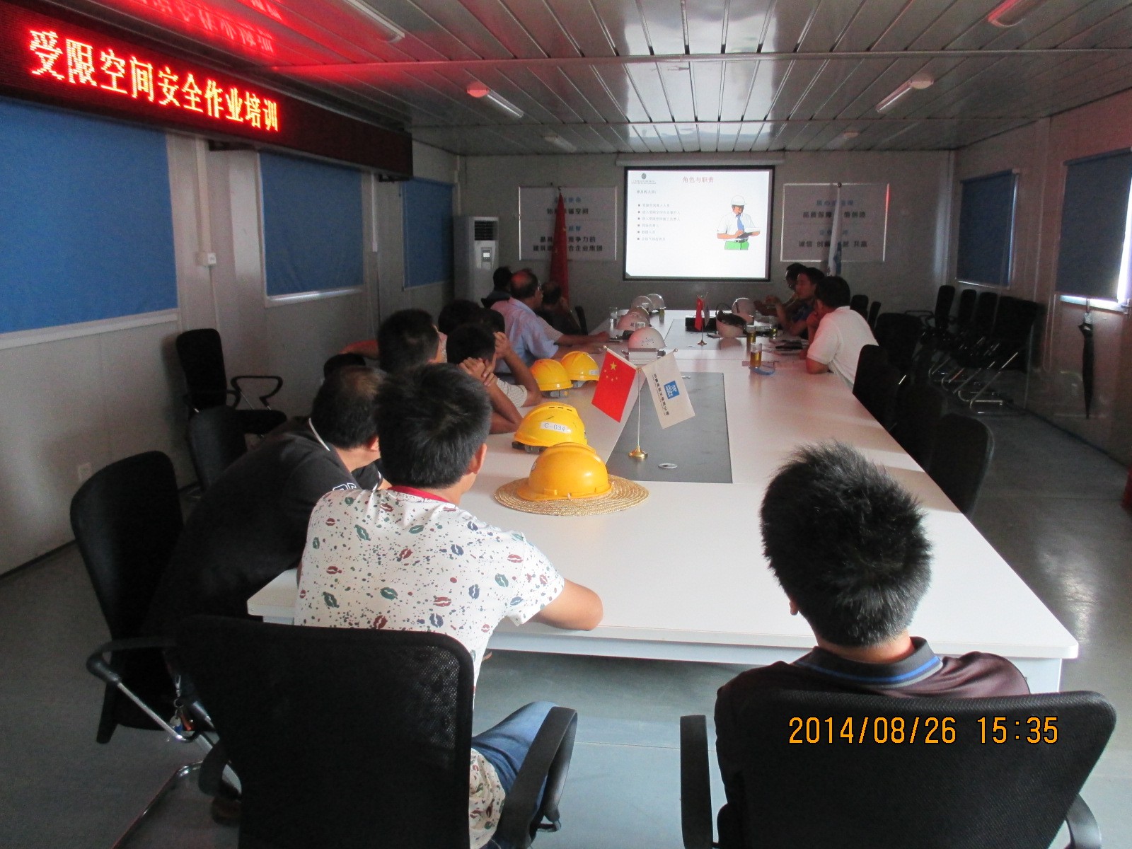 2014年8月26日下午15:30, 廣州香港馬會安裝項目部組織安裝管理人員、項目安全員、馬會安全負責人、馬會安裝負責人、監(jiān)理和工人在項目會議室召開受限空間安全作業(yè)培訓會議。會議內容:會議根據項目現(xiàn)場工人要到雨水、排水管道內清理泥沙及維修,面臨的施工環(huán)境存在生物危害如毒蛇,有毒有害氣體,缺氧等,為確保每個施工人員的生命安全及工程順利施工,重點講解了什么是受限空間,在受限空間內作業(yè)的危險,香港馬會受限空間作業(yè)安全工作規(guī)范和程序,受限空間內施工的重點注意事項,緊急營救方案的要求,必須配備的各種安全措施及氣體檢測工具。會議后,就施工中要面對的細節(jié)問題與工人進行了深入的溝通、交流,達到了會議培訓的目的。