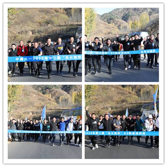 11月8日培訓內(nèi)容為30公里領導力徒步活動。清晨,公司黨委書記、董事長齊朋,總經(jīng)理、黨委副書記?;瘧?,副總經(jīng)理王有標,副總經(jīng)理劉明,副總經(jīng)理李云,總會計師楊宏偉,紀委書記徐亮,黨委副書記、工會主席劉文納,副總經(jīng)理李延佩,副總經(jīng)理王濤,副總經(jīng)理趙健,人力資源總監(jiān)、人力資源部經(jīng)理聶麗12位領導帶領四支隊伍,整裝待發(fā)。出發(fā)前,各隊進行團隊風采展示,學員代表陳前鐘帶領大家宣誓。在完成準備活動后,公司領導帶領四隊學員正式踏上征程。