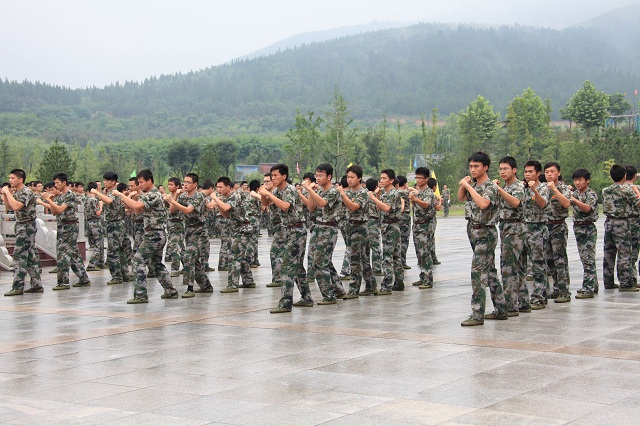 在李董事長(zhǎng)的指示下,伴隨著雄壯的《中國(guó)人民解放軍進(jìn)行曲》,新員工們身著迷彩,邁著整齊有力的步伐走過主席臺(tái),進(jìn)行了列隊(duì)式、分列式等表演?!傲钚薪?,使命必達(dá)”,伴隨著嘹亮的口號(hào),二連的男員工們表演了虎虎生威的軍體拳。巾幗不讓須眉,在交通指示動(dòng)作的表演中,女員工們的颯爽英姿也給人留下了深刻的印象。新員工們整齊劃一的動(dòng)作、飽滿向上的狀態(tài)贏得了陣陣掌聲,充分展現(xiàn)了八局新兵的鐵軍精神和氣概。最后,隨著全體新員工手語操表演――《感恩的心》的結(jié)束,整個(gè)軍訓(xùn)匯報(bào)表演畫上了圓滿的句號(hào)。