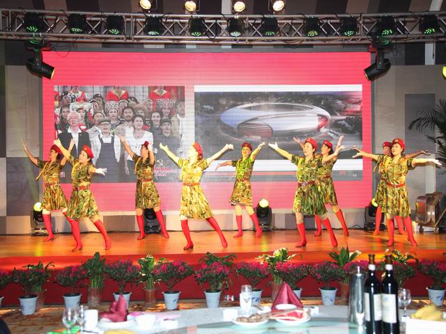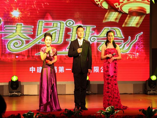 團拜會演出在富有激情的舞蹈《南非風(fēng)情》中拉開了帷幕。整臺演出精彩紛呈,高潮迭起。員工自編自演的各類節(jié)目豐富多彩,幸運大抽獎更是讓員工驚喜連連,演出現(xiàn)場歡聲笑語不斷。相聲《咱公司的那點事》、小品《牛郎與織女》、啞劇《候車室的故事》讓現(xiàn)場觀眾笑成一片;歌曲《相親相愛》唱出了一公司員工團結(jié)互助是一家人的心聲;歌伴舞《荷塘月色》在現(xiàn)場燈光和舞臺的配合下,為大家呈現(xiàn)了一幅唯美的畫面;別具風(fēng)格的三句半《公司喜事多》,讓大家過了一把情景劇版三句半隱;情景詩朗誦《閃亮的日子 閃亮的青春》則為大家講述了一群年輕人到工地后半年的切身感受;歌手楊坤的《無所謂》被演員模仿的惟妙惟肖,足以以假亂真;舞蹈串燒《青春旋律》讓大家感受到了一公司年輕人的青春活力;小品《施工情》講述了一公司人舍小家顧大家、令行禁止、使命必達的精神,得到了現(xiàn)場觀眾的共鳴。演出在氣勢磅礴的《走向復(fù)興》中圓滿落幕,出席團拜會的領(lǐng)導(dǎo)同志走上舞臺,同全體演員合影留念。