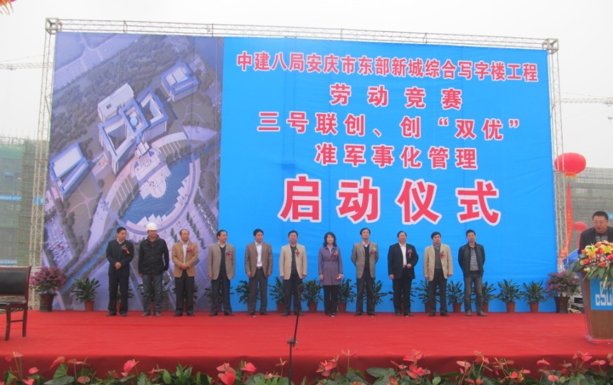 10月28日上午10點18分,安慶市東部新城綜合寫字樓項目隆重舉行勞動競賽、“三號聯(lián)創(chuàng)”、創(chuàng)“雙優(yōu)”暨準(zhǔn)軍事化管理試點活動啟動儀式。安慶市人民政府副秘書長程天舒,安慶市質(zhì)量監(jiān)督站站長張令軍、安慶市建管處副主任吳多華、安慶市市政府研究室主任吳邦本,公司黨委書記許紅,副總經(jīng)理張思印、紀(jì)委書記薛樹海及項目部全體員工參加了活動。