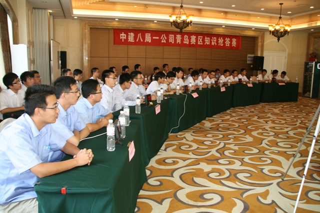 青島分公司、上海分公司、廣東分公司于9月3號率先開賽,北京分公司、河南分公司、安徽分公司、濟南分公司于9月17號同時開賽,各單位領導高度重視,廣東分公司經(jīng)理、書記均出席了此次活動、北京分公司項目經(jīng)理均到現(xiàn)場為自己的隊員加油鼓勁,所有參賽隊員及觀眾均統(tǒng)一著裝,體現(xiàn)了對此次活動的重視程度。河南公司制作的知識搶答賽預告片給人耳目一新的感覺;廣東賽區(qū)廣東分公司機關代表隊在風險題環(huán)節(jié)不敵水榭春天代表隊,錯失冠軍;濟南賽區(qū)濟南公安局項目代表隊遙遙領先、兗州文化園項目代表隊緊追其后;北京賽區(qū)天津中船重工項目代表隊和天津檢疫局代表隊展開了激烈爭奪。安裝分公司、裝飾分公司、基礎設施分公司書記也根據(jù)情況出席了分片區(qū)比賽現(xiàn)場?;顒咏M委會從各單位準備情況、項目參賽率、錯題率、犯規(guī)情況、觀眾人數(shù)、主持人主持情況、書面答題等各個方面對各賽區(qū)組織工作進行了綜合考評。