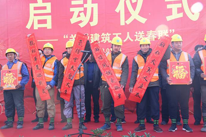 公司暖冬系列活動啟動儀式暨關(guān)愛建筑工人送春聯(lián)活動在濟(jì)南中央商務(wù)區(qū)安置區(qū)(CBD)項目舉行
