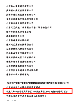 正值建黨百年之際,公司在山東省住建系統(tǒng)重點工作攻堅勞動競賽先進(jìn)典型選樹活動中斬獲多項榮譽,包括山東省住建系統(tǒng)改革創(chuàng)新攻堅競賽示范企業(yè)(一公司)、山東省住建系統(tǒng)重點工程攻堅勞動競賽示范企業(yè)(一公司)、山東省住建系統(tǒng)重點工程攻堅勞動競賽示范項目部(魯南高鐵、農(nóng)業(yè)工程學(xué)院淄博校區(qū))、山東省住建系統(tǒng)安全生產(chǎn)競賽(“安康杯”競賽暨查保促活動)優(yōu)勝單位(一公司)、山東省住建系統(tǒng)安全生產(chǎn)競賽(“安康杯”競賽暨查保促活動)優(yōu)勝項目部(平安360)、山東省住建系統(tǒng)勞模和工匠人才創(chuàng)新工作室(趙忠楊超高層高效建造創(chuàng)新工作室)等6項集體榮譽和山東省住建系統(tǒng)改革創(chuàng)新標(biāo)兵(1人)、山東省住建系統(tǒng)重點工程攻堅勞動競賽標(biāo)兵(2人)、山東省住建系統(tǒng)安全生產(chǎn)競賽(“安康杯”競賽暨查保促活動)安全標(biāo)兵(1人)等3項個人榮譽。