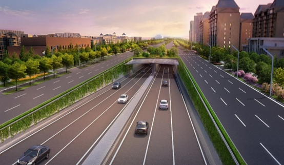 廣渠路東延(怡樂(lè)西路-東六環(huán)路) 全長(zhǎng)7.664km,是連接北京中心城區(qū)與通州城市副中心行政辦公區(qū)的重要通道。廣渠路東延道路規(guī)劃為城市主干路,雙向六車(chē)道,按地面、地下兩套系統(tǒng)設(shè)置,地面道路設(shè)計(jì)速度為60km/h,地下道路設(shè)計(jì)速度80km/h,配套建設(shè)綜合管廊及雨污分流排水系統(tǒng)。