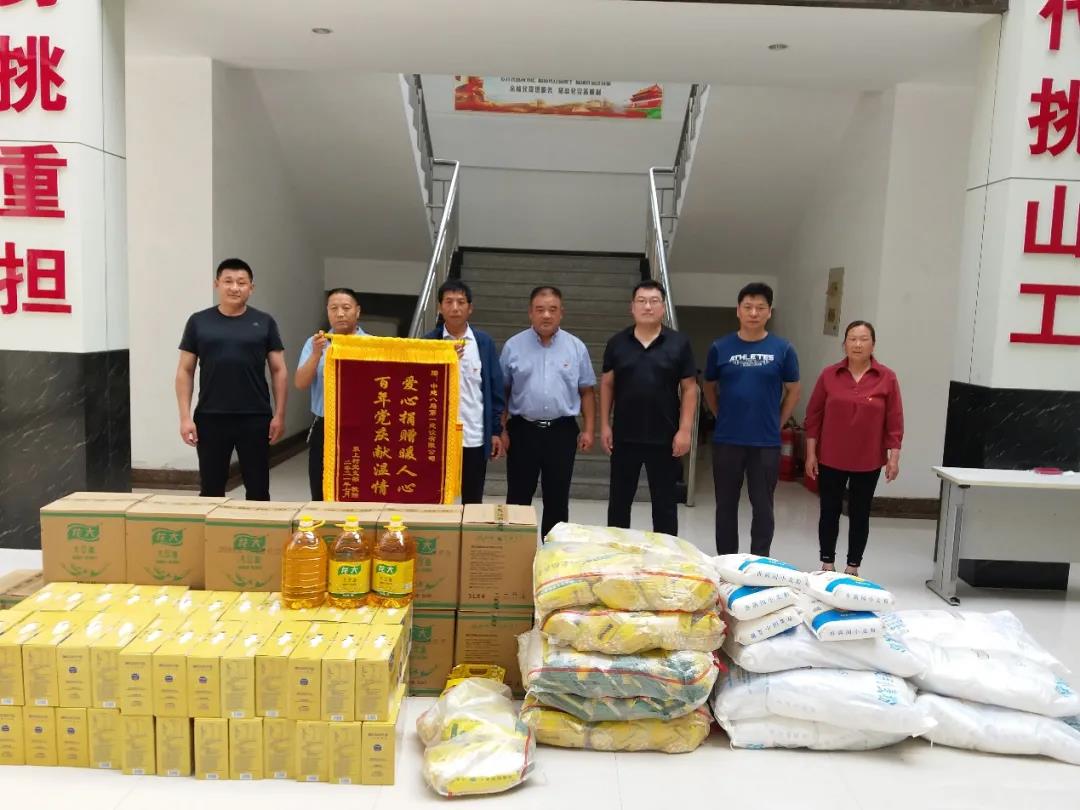 正威泰安金屬新材料項(xiàng)目人員為項(xiàng)目所在地岱岳區(qū)泉上村的老黨員們送去米面油、牛奶等慰問(wèn)品,并應(yīng)邀參加村委組織的慶祝建黨100周年茶話會(huì)。對(duì)項(xiàng)目部為村里提供大型機(jī)械、修筑排水溝等一年來(lái)的援助,村支書(shū)周長(zhǎng)偉表示衷心感謝,并贈(zèng)送了錦旗。